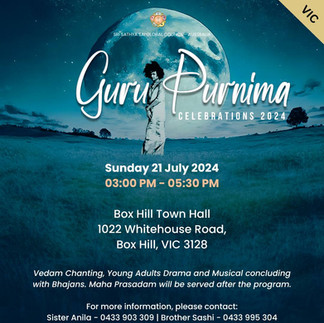 Amidst the winter blues, how about soaking oneself in the divine bliss and ultimate happiness? Well, the 21st of July 2024, is approaching. Please join in the celebrations as the regions across Australia are celebrating the auspicious occasion of Guru Purnima with our beloved Bhagawan’s blessings.
