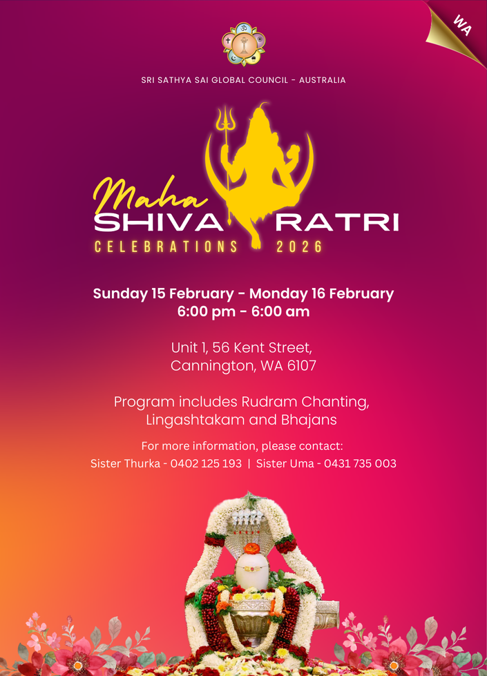 Below you will find details of Maha Shivaratri events being conducted across Australia. These gatherings include special poojas, abhishekam, bhajans, chanting, cultural programs, and community prayers, giving devotees an opportunity to come together in devotion and celebrate this auspicious night in a spiritually uplifting atmosphere. Each region has planned unique programs so everyone can participate in a way that is closest to their home and heart.